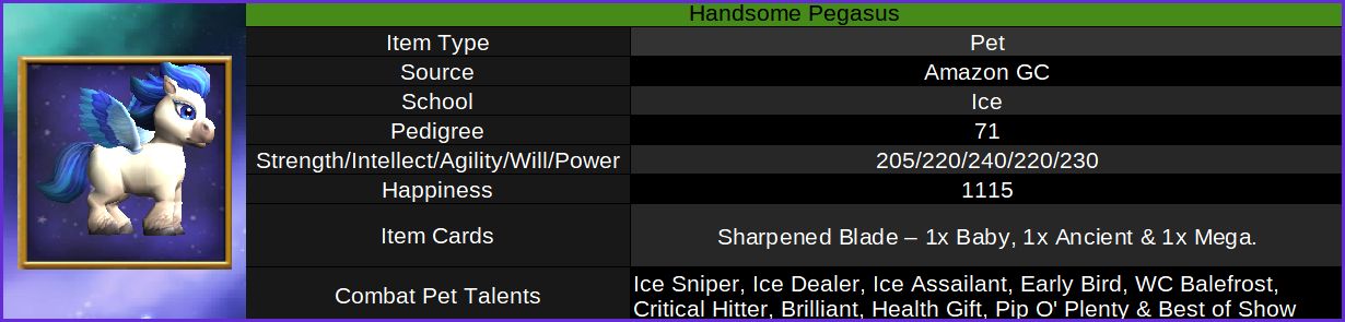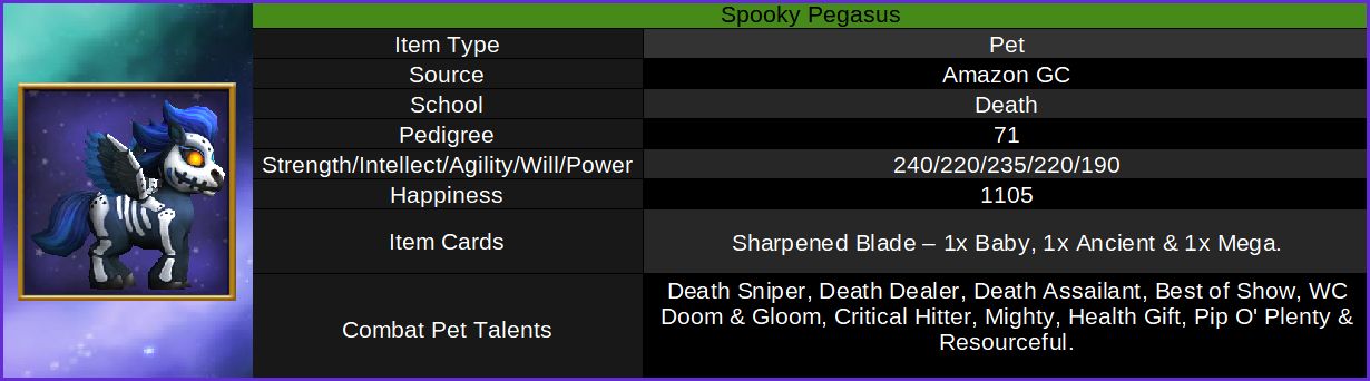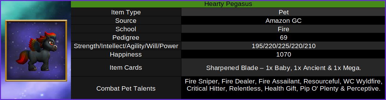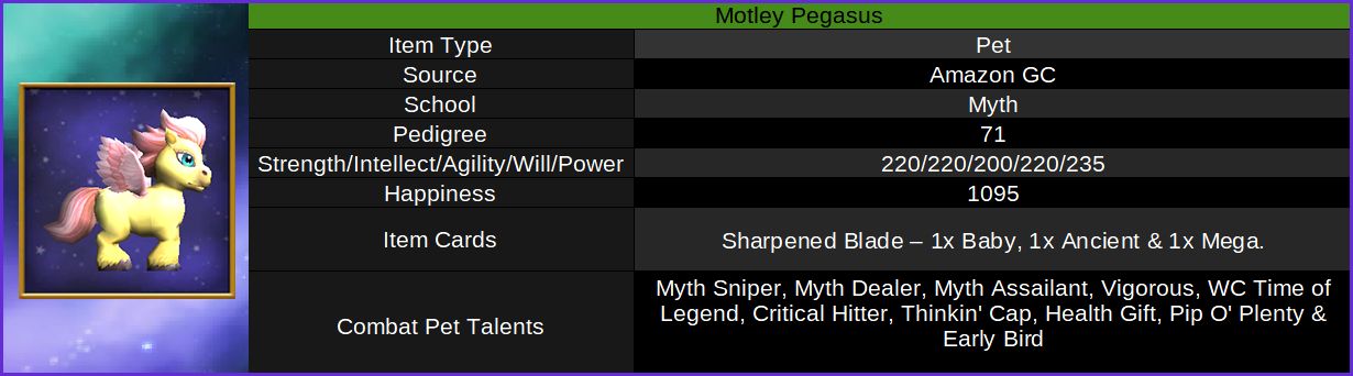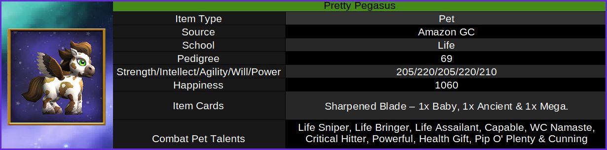 As you can see above, the pets from this Gift Card seem to be monthly rotational Pegasus pets. These were added in the update of January 20th and with the exception of the Prismatic Pegasus - have not been modified since.